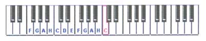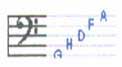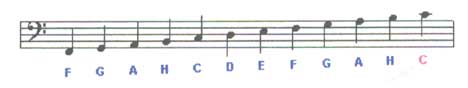 Bass açarynda not saçagyň aşakdan birinji çyzykdan G ses bilen başlanýar. Piano-da bass açarly notlar, orta c çenli ýerleşýär.