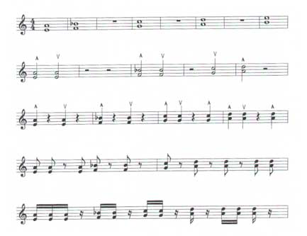 Ýarym notlar we pauzalar tamdyrada, çalnyş görünşi : Audio : ýarym not we pauzalar