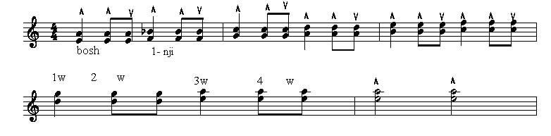 Şonuň üçin indi bir kiçi saz böleg bilen Tamdyrany çalmany öwrenip başlaýlyň. Türkmen halk heňi Lälä. Bu saz-da görşüňüz ýaly hemme ýerde başam we süýem barmak ikisi bile bir perdäni tutanoklar.Şu sebäpden aşaky kirş we ýokarki kirşleriň not ýazuw boýunça atlaryny her kirşiň perdelerine göre öwrenmeli. Köplenç kän täze öwrenjiler tamdyrany öwrenen wagtlary beter howlukýarlar. Tamdyrany öwrenýän zamanyňyz, gaty ýuwaş we sanap çalmaly. Onsoň haçanda sazyň umumy bolşuny bileňizde, şol öwrenýän sazyň heňini ,öz içiňizden ýa-da nähilli mynasyp görseňiz tamdyrada çalýan saz bilen hiňlenip öwrenseňiz has hem öňat çalyp bilersyňiz. Audio( 2 ) Lälä Moderato Türkmen halk heňi 5nji barmak Türkmen kompozitorlary läläni iki forumda ýazypdyrlar.Aşakdaky läle heňi 3nji görnüşi. -II-